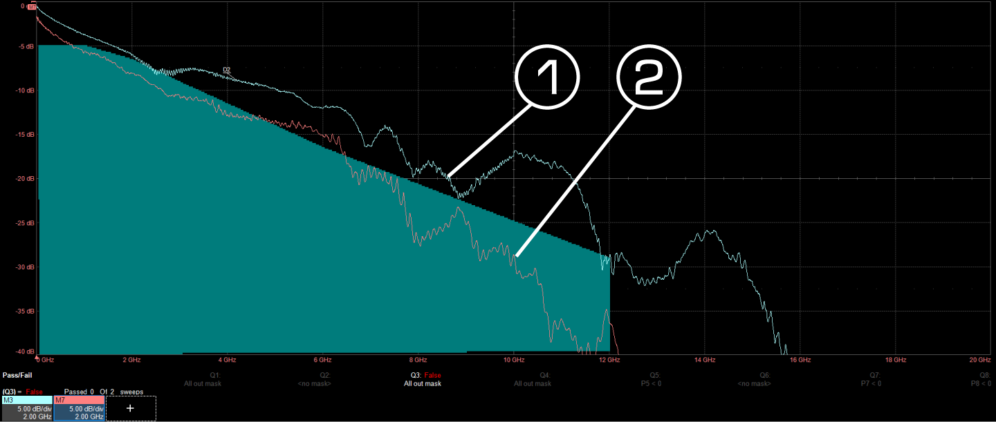Je höher die Frequenz, desto höher die Datenrate im Kabel. Je höher die Kurven über der blauen Box liegen, desto weniger Verluste